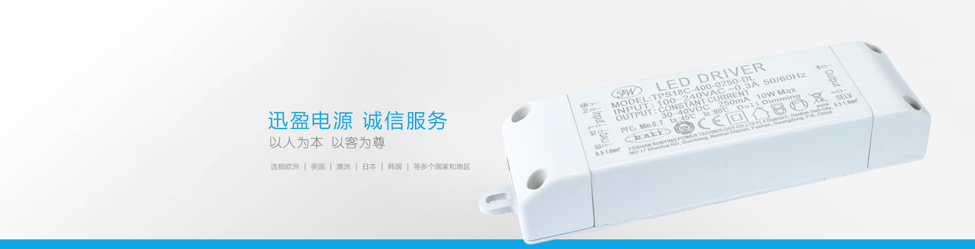 迅盈電源產品規格齊全,產品已獲GS、BS、UL、CUL、CE、SAA、EK、CEC、PSE、CB、RoHS、CCC認證,被廣泛應用于LED燈、家用電器、影音器材、通訊、電子電玩、電動工具電腦周邊等產品,以“高效”、“節能”“環保”贏得國內外市場,選銷歐洲、美國、澳洲、日本、韓國等多個國家和地區。